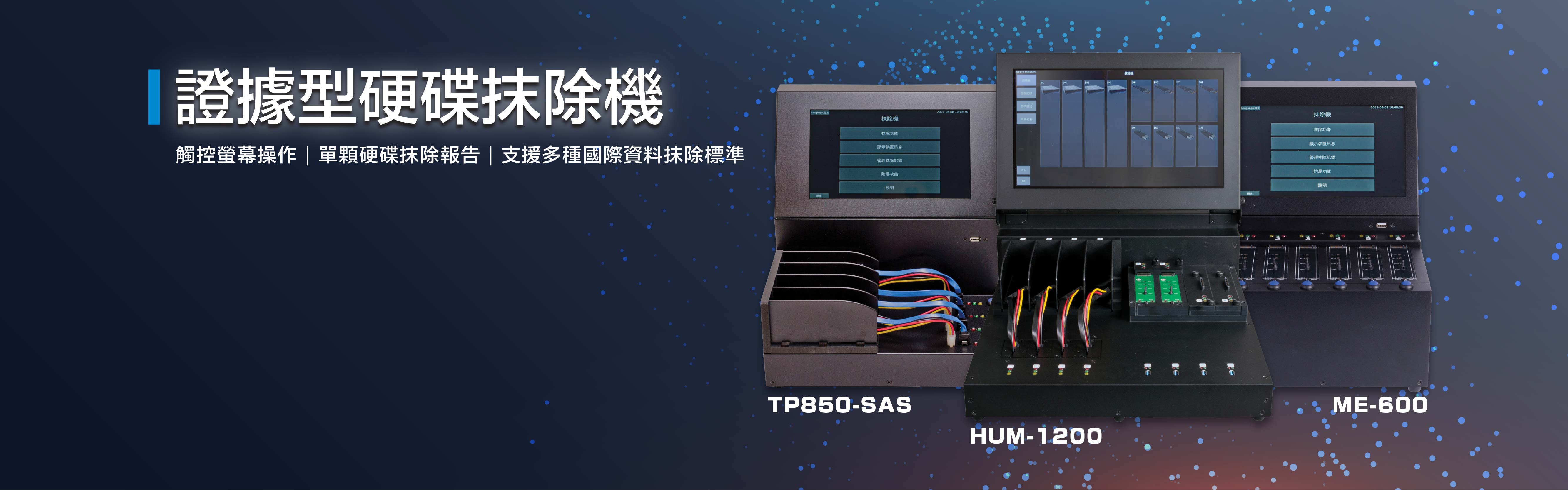 資迅科技全系列證據型硬抹除機,單機作業、操作簡單,內建多種符合國際抹除標準的抹除模式,可同步抹除多個儲存裝置,單機儲存抹除記錄,為儲存媒體銷毀流程留下完整記錄。