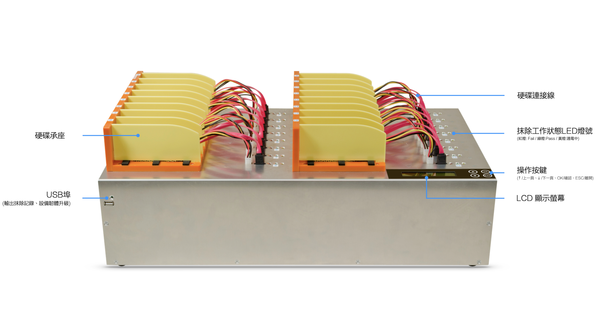 - 可抹除 2.5"/ 3.5" SATA 硬碟、IDE硬碟 及 SSD固態硬碟