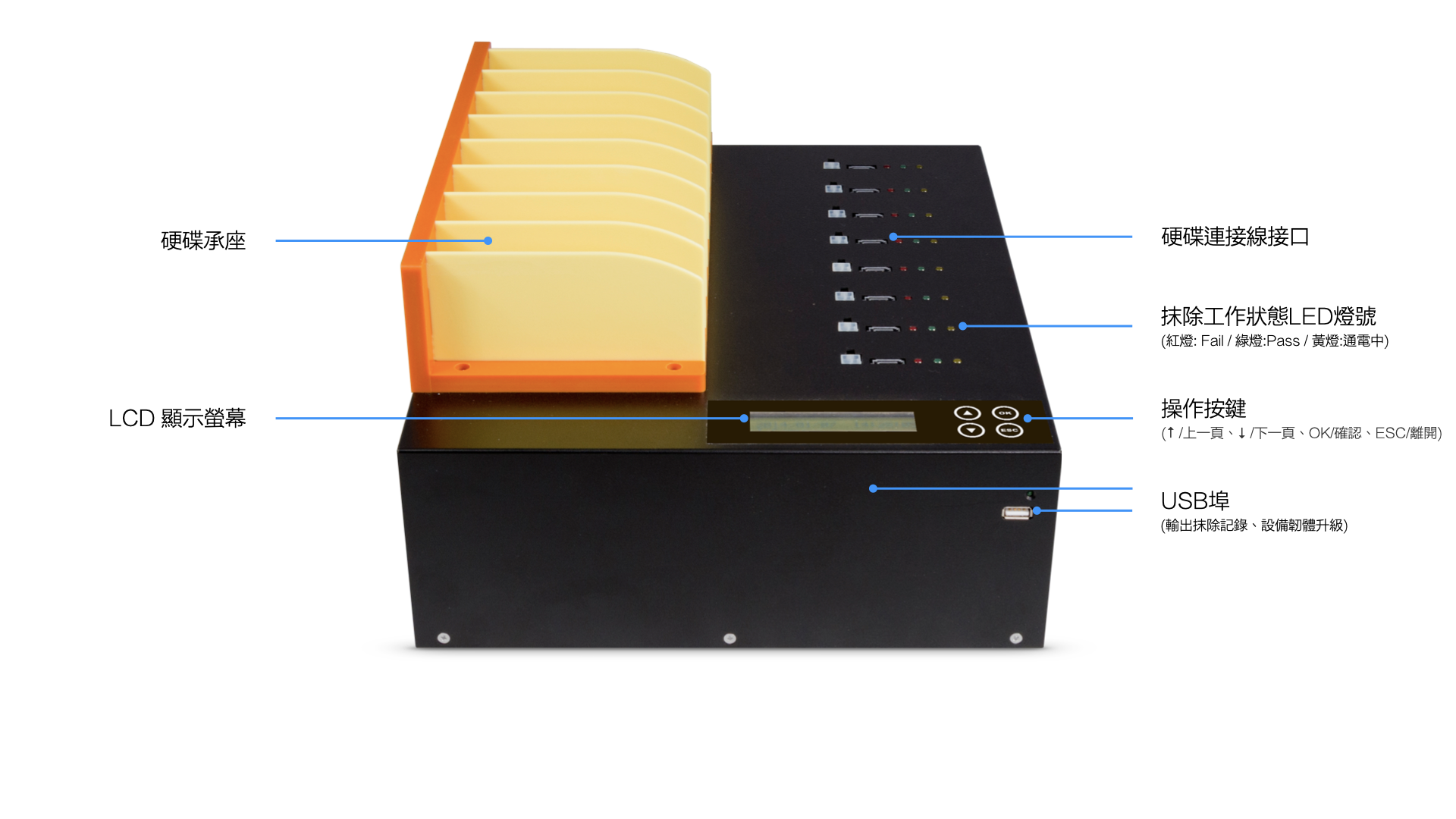 - 支援每分鐘 18GB 高速硬碟抹除
