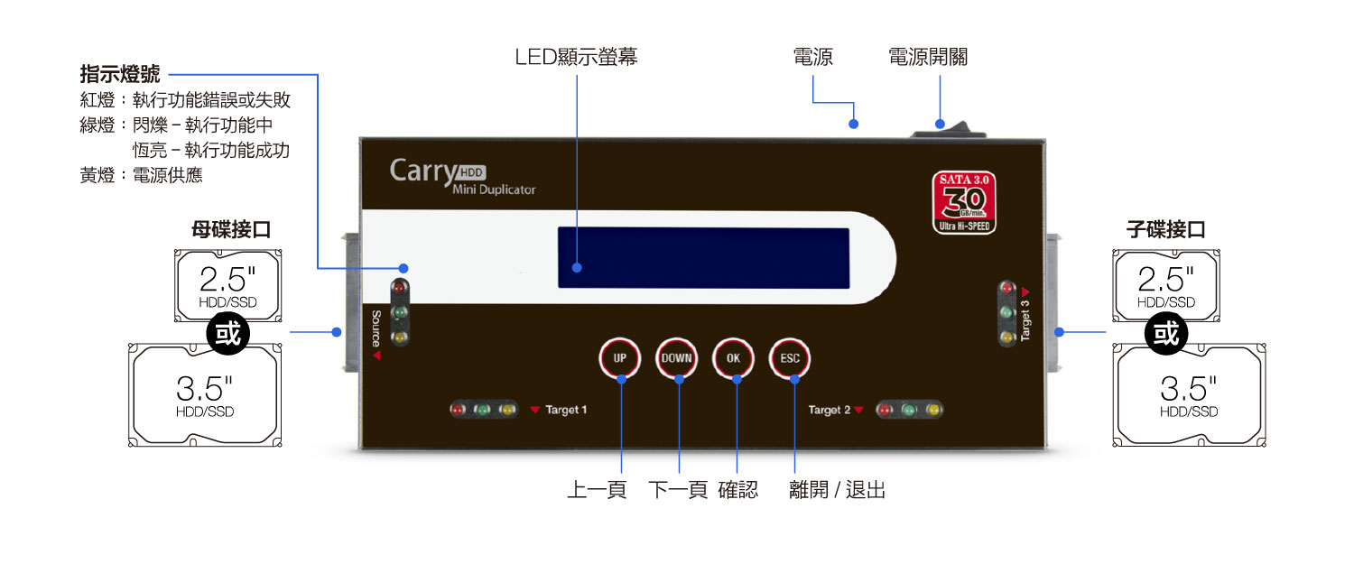- 無需電腦連線,單機執行硬碟資料拷貝